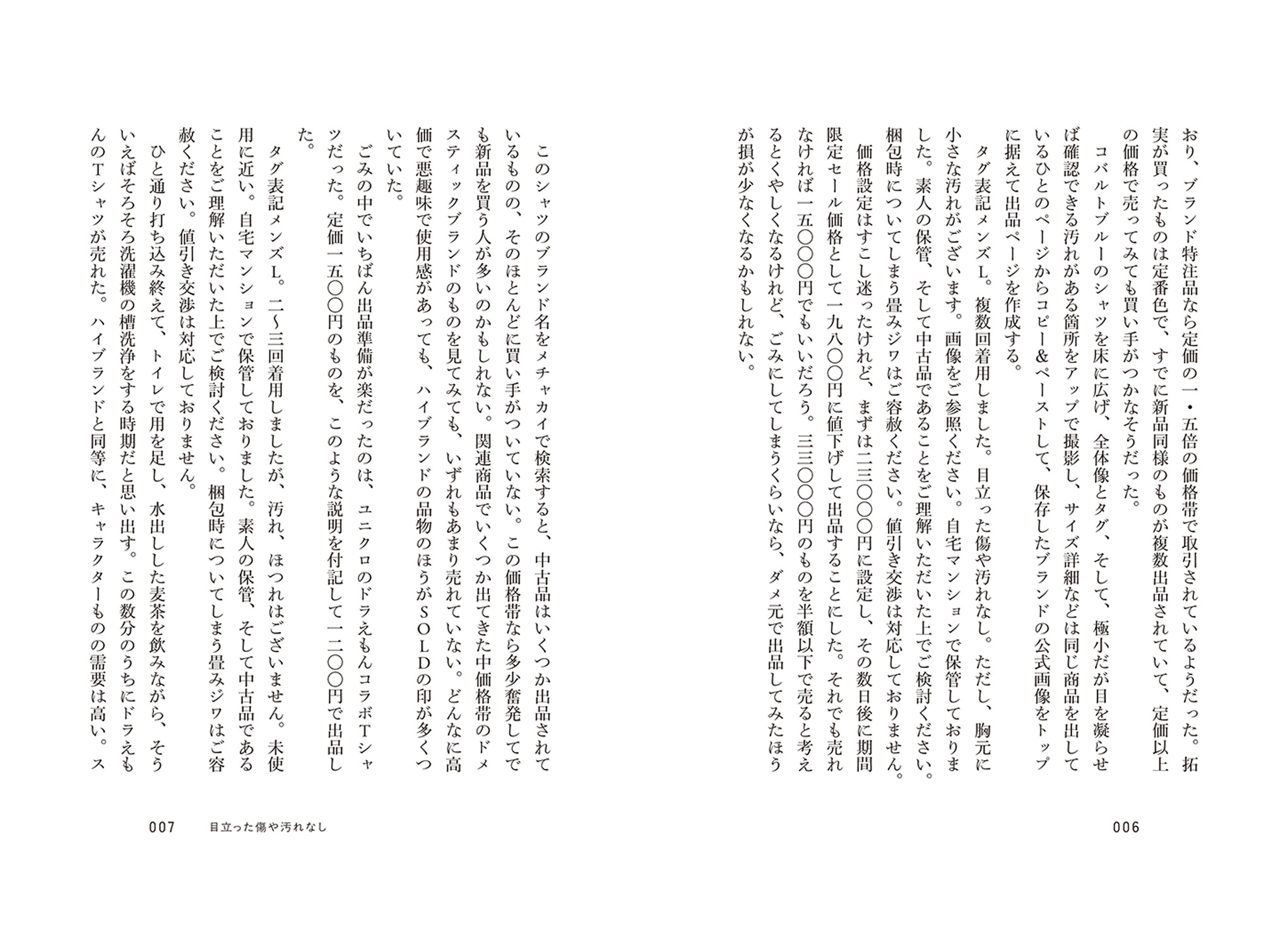 誰かが欲しがっていれば、それはもうごみじゃない――フリマアプリの「せどりサークル」に加入した翠。物の価値を見極める活動に高揚する一方、休職中の夫への愛情は下降し……。