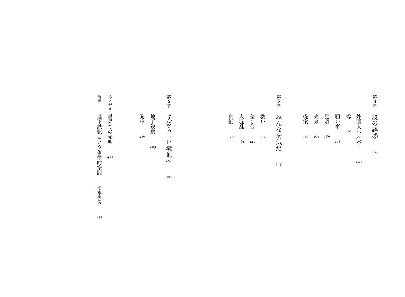 地下鉄という現代の交通機関は、個々の実存の不安を乗せる一方で、出発と帰還を支えている。本書で最も引き付けられるのは、冷静に傍観しているようでいて、「理解しようとする」やさしさを潜めた語りである。