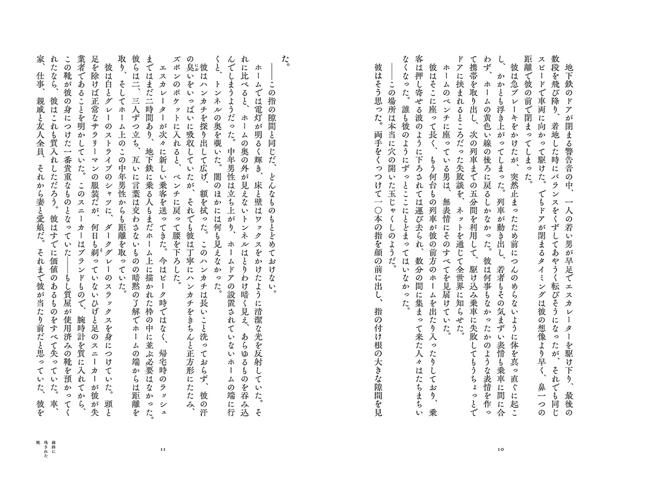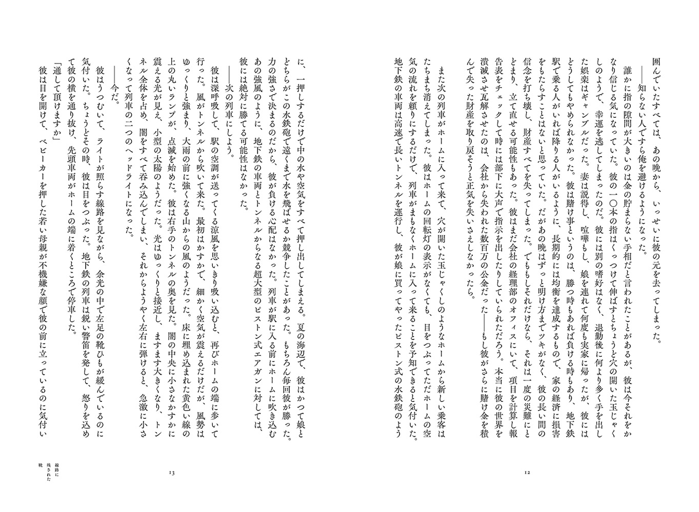 読了後、語られなかったこと、描かれなかった余白に読者は深く心を揺さぶられ、何かを考え始める。こうした、読後から始まる独特の余韻、静かな残響音は、本作品における最大の魅力といってよいだろう。