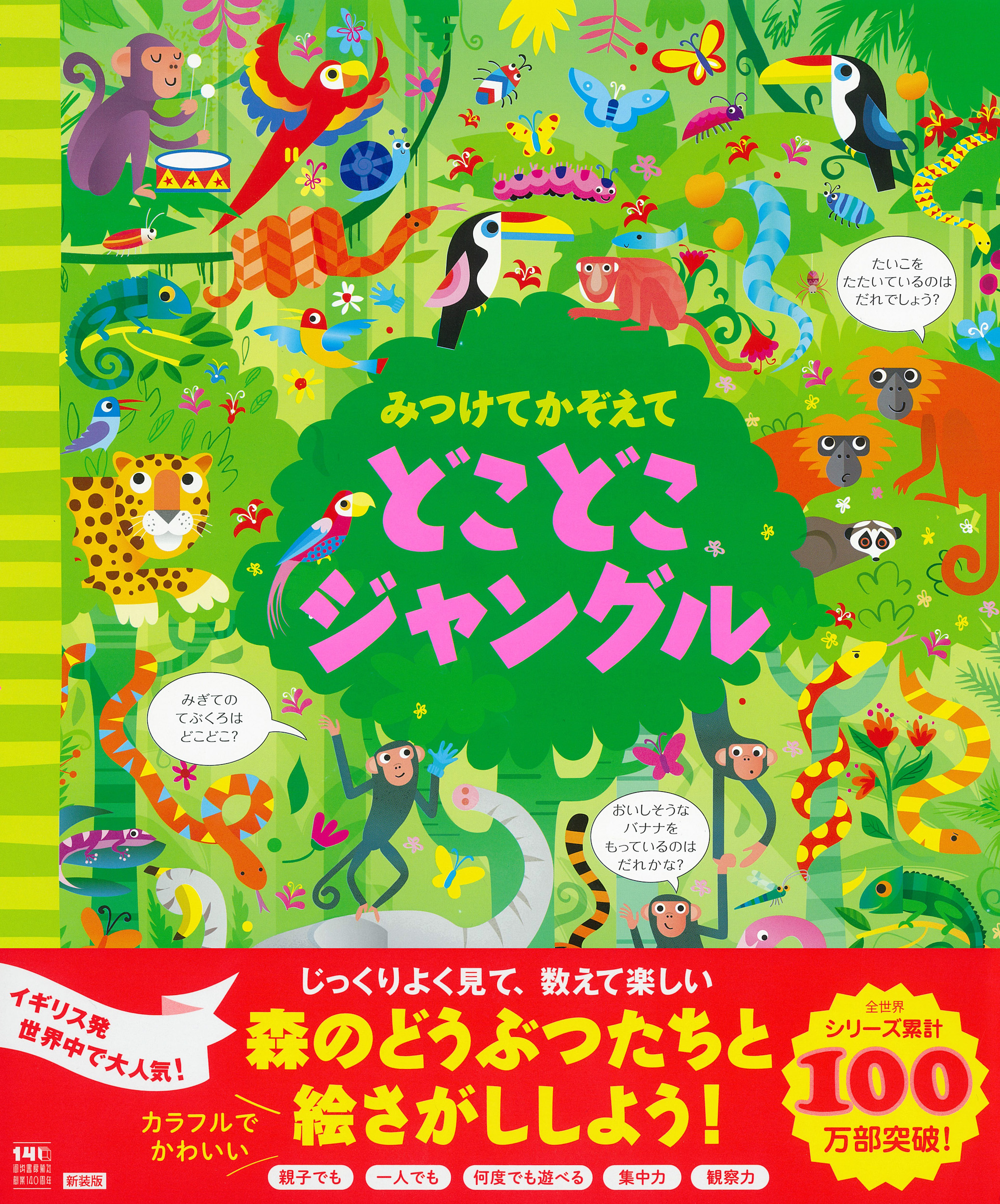 シリーズ累計100万部突破! 世界中で大人気の絵さがし本。カラフルで魅力的なジャングルのどうぶつたちの世界を楽しもう! みんなでも一人でも遊べて、集中力が身につきます。新装版