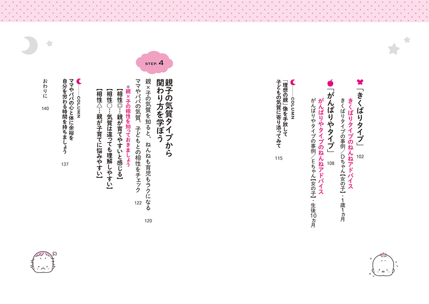 本書は、赤ちゃんの「気質タイプ」に合わせた、親子にやさしい新しい寝かしつけの方法をまとめた1冊です。