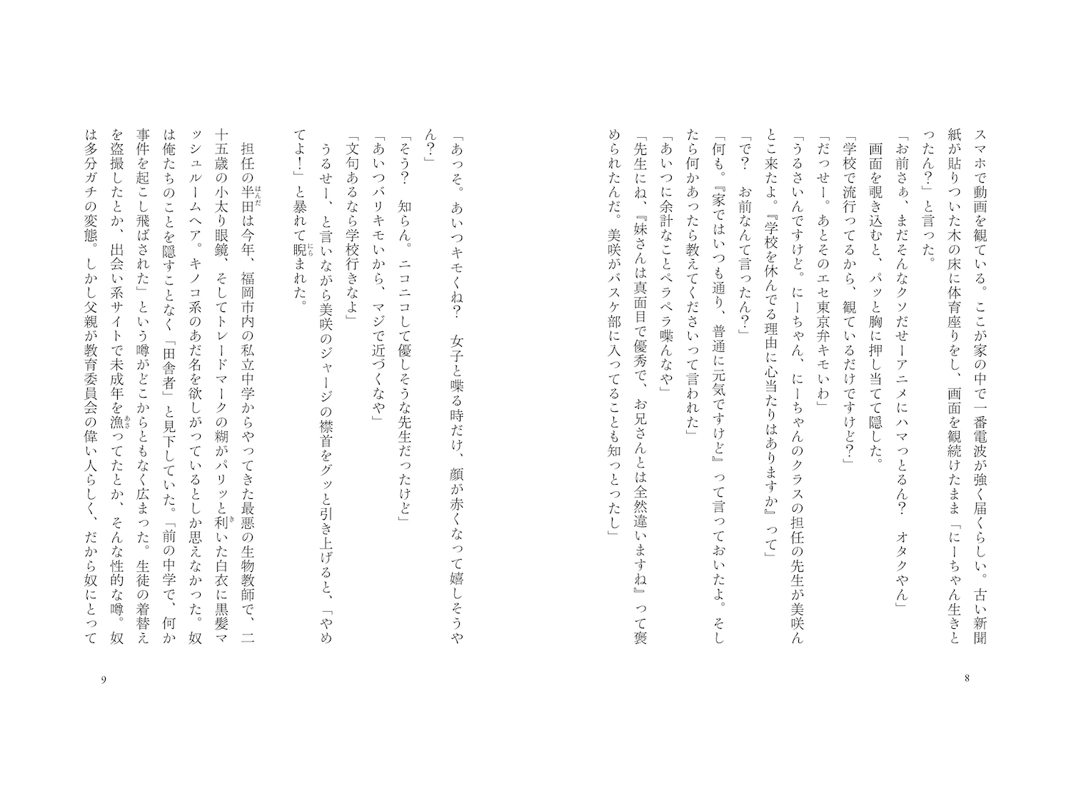 「この先俺は、きっと何もなれんと思う。夢の見方を知らんけん」北九州の片田舎。中学生の界は、地元で知り合った「バリイケとる」男・橘さんに心酔するのだが――。第60回文藝賞受賞作。
