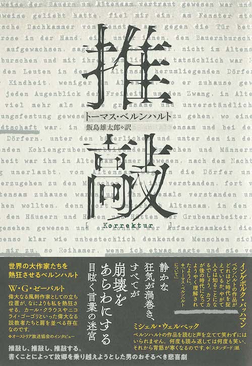 自殺した友人の遺稿を整理するために動物剥製師宅の屋根裏部屋にこもった主人公が見出したものはなにか。三つの狂気が交錯し交響する戦慄的なカオス。ベルンハルト中期の長篇、ついに邦訳。