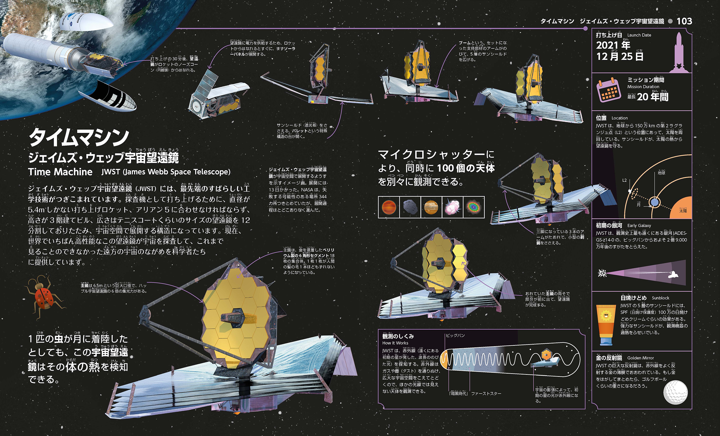 最新探査機と宇宙望遠鏡でのぞく未知の宇宙! 大迫力の写真+データ合成図+科学的スーパーリアル図など600点収録! 月面探査「アルテミス計画」や火星探査まで、貴重な画像とともに最新ミッションがわかる、今までなかった宇宙図鑑!