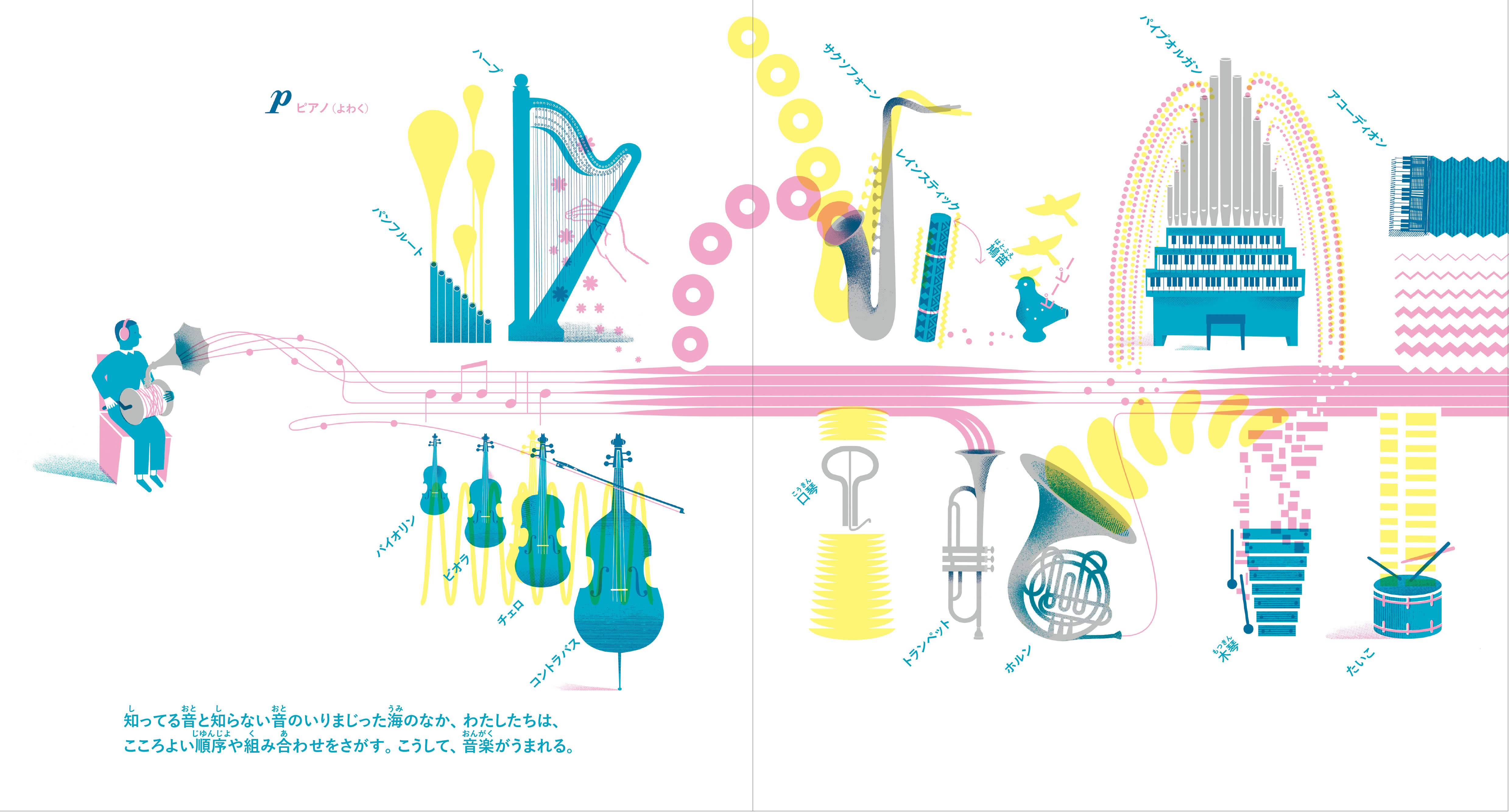 美しいグラフィックで「音」や「聴くこと」について、子どもにもわかるように絵が音を語る、初の試み。ブラティスラヴァ世界絵本原画展(BIB)とボローニャ・ラガッツィ賞のダブル受賞作品!