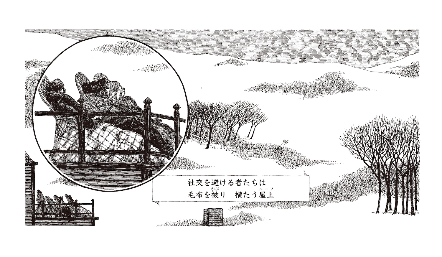 細密な線画で淡々と描かれる寂しげな冬の谷の風景。随所に出現するクローズアップ。ゴシックかつクラシカルな雰囲気で、何が起こっているのかと想像力を掻き立てるダークな一冊。