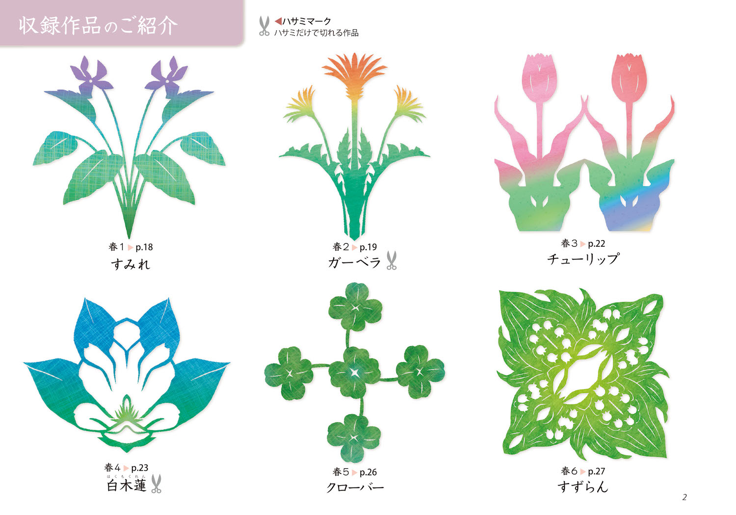 ハサミだけで出来るから簡単・安心! 四季の華麗な花々から野菜、風物まで、手軽なのに美しい作品が仕上がります。ご年配の方へのプレゼントや介護の現場などにもピッタリ! 改題新装版。