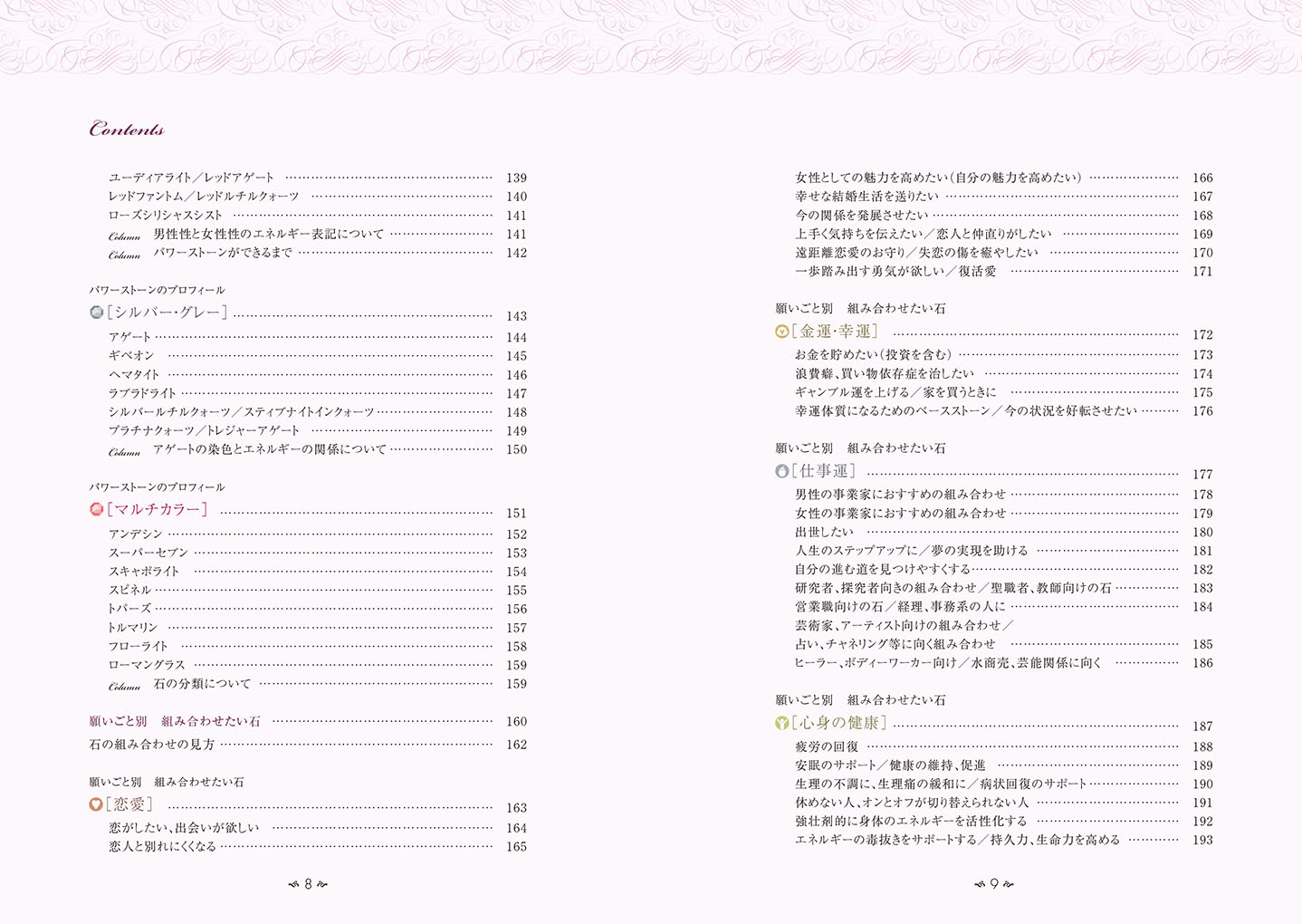 人気の173種の石を写真やデータと共に詳説、石の力を引き出す組合せを願い事別に多数紹介。目的や好みにぴったりの組合せが必ずみつかる、初心者からプロまで活用度の高い一冊。新装版。
