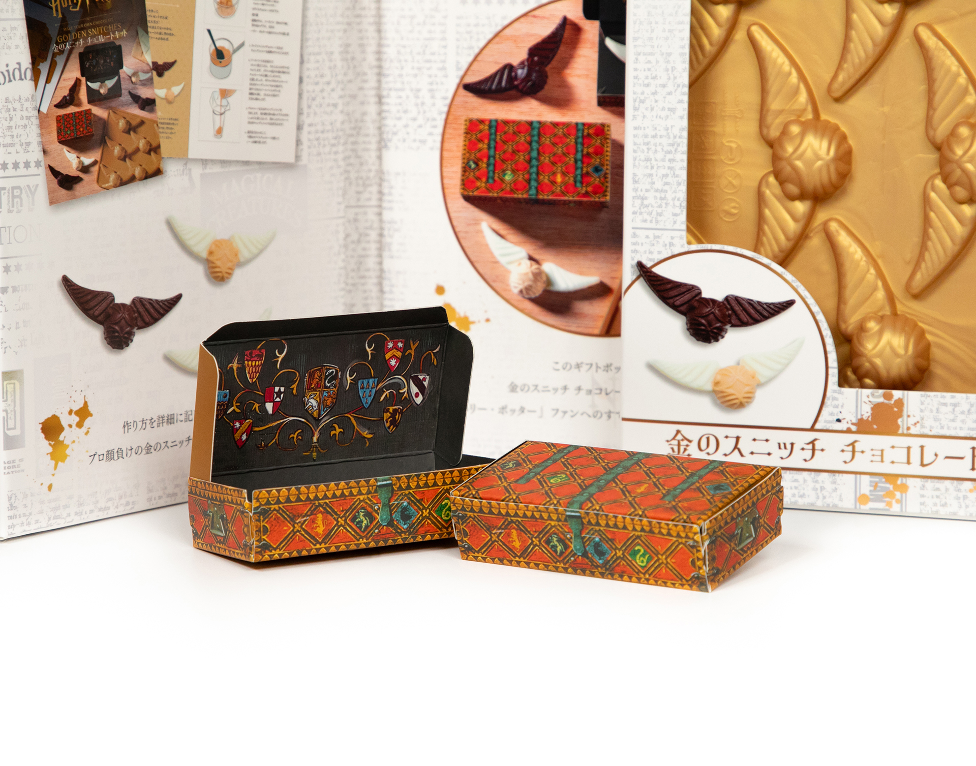 魔法界のスポーツでおなじみクィディッチのキーとなるボール「金のスニッチ」のチョコレートが作れる夢のキット。誰でも簡単に作れます!作ったチョコレートはクィディッチのトランクを模したギフトボックスに入れて、素敵なプレゼントにも。作り方が掲載されたレシピ付き。