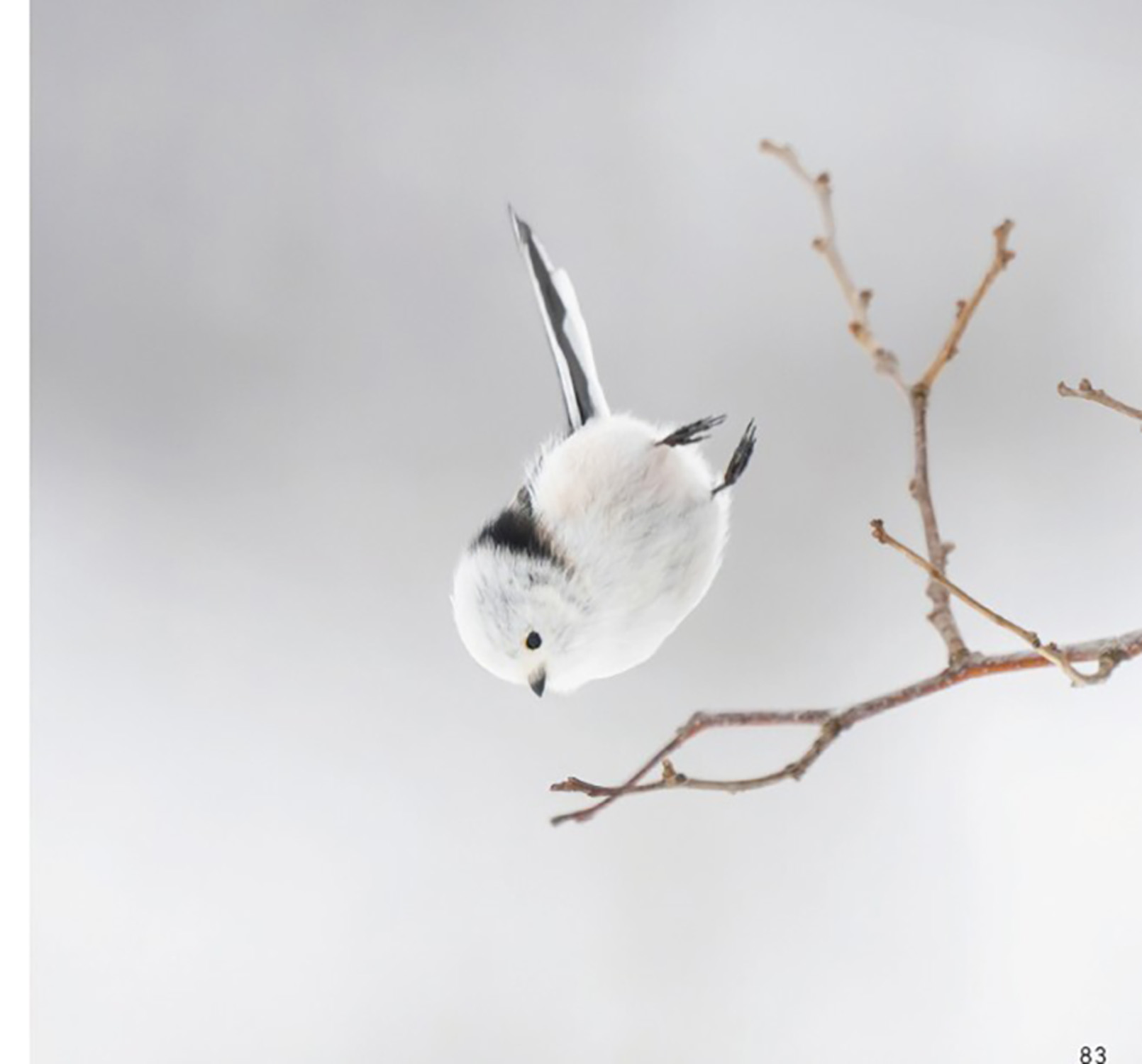 シマエナガが枝から離れると、次の瞬間に翼をたたんで空気抵抗を減らし一気に加速、ロケットのように真っ直ぐ飛んでいきます。躍動感あふれるシマエナガの可愛い姿をたっぷり集めた大人気写真集。
