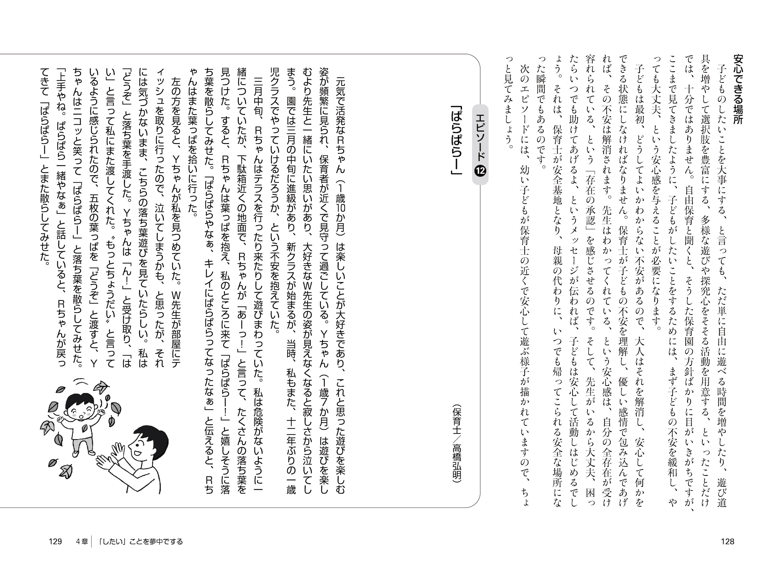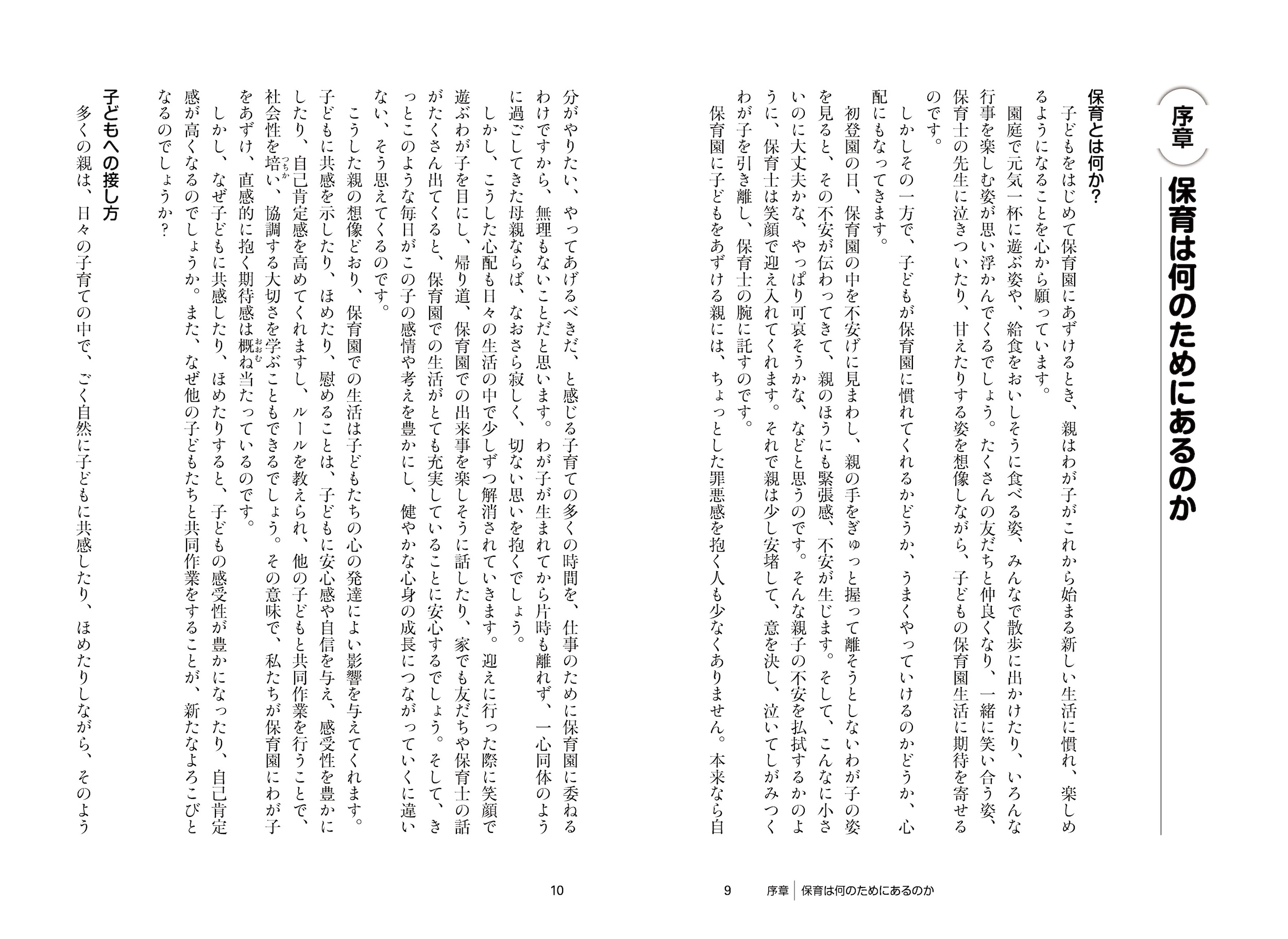 保育のエピソードから見えるもの/協力し合って子どもをケアする/保育士とカウンセラーの共通性/保育と学校教育の連携/多様な人々と共生するために/民主主義の社会を生きる子ども……