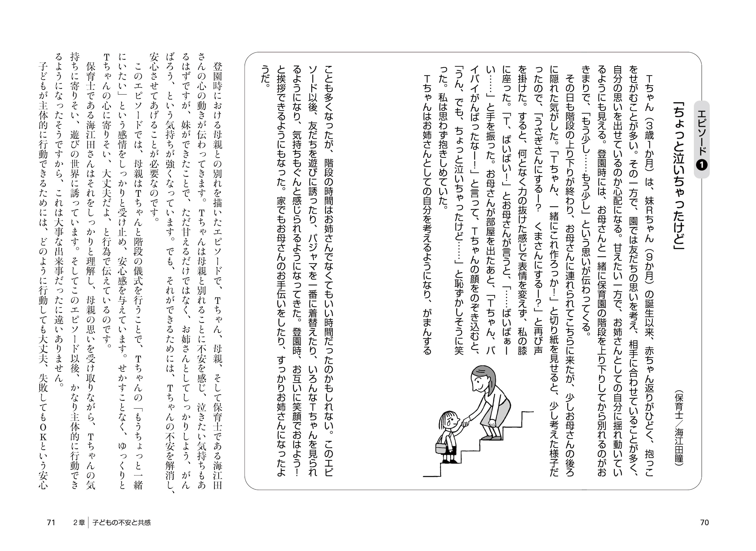 不安を解消しようとする子ども/エピソード「ちょっと泣いちゃったけど」/こだわり行動はなぜ起きるのか?/子どもはなぜ困っている子を助けるのか?/エピソード「おそと行こうか」/子ども同士の共感と成長……
