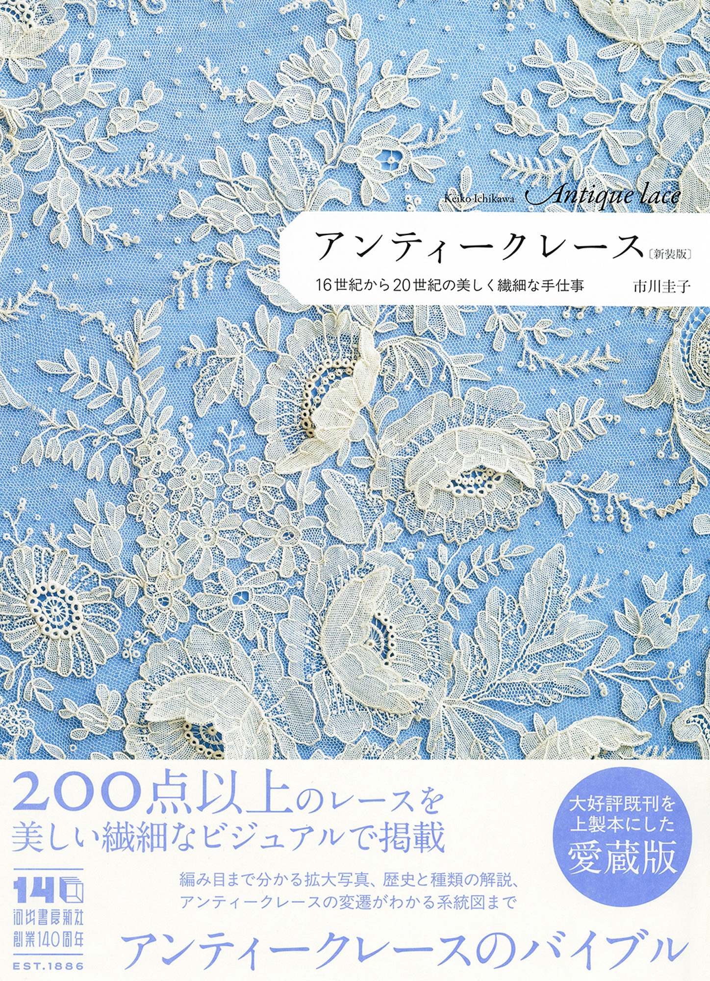 “糸の宝石”アンティークレースを編み目までわかる精細な美しいビジュアルで紹介。歴史と種類の解説やレースの変遷がわかる系統図入りでレース好き必携の一冊。ハードカバーになった新装版。