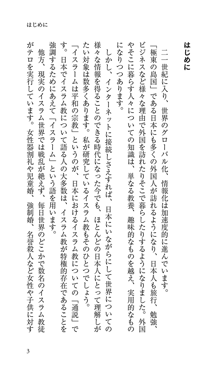 ヨーロッパでは「同化しない」イスラム教徒たちが、「移住」と「多産」により各国で議席を獲得しはじめるなど、民主的なイスラム化をすすめる「静かなるジハード」が進行し問題となっている。また、イスラム教徒が集住することで生まれたノー・ゴー・ゾーン(警察管理外地域)の増加、学校のイスラム化など、これまでの西洋的価値観では対応しきれなくなり、その失敗が白日のもとに晒されている。一方で、イスラム諸国も「イスラム教の宗教言説」を改革しなければ、テロの問題を解決できないことを認め、正面から向いはじめている。移民問題をはじめ、ターニングポイントに立たされている日本は、西洋の二の舞とならずに、どのように対処していけばよいのか──