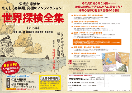 ヴェニスから小アジア・パミール高原を経て中国に入り、元が席捲するアジア各地を行脚、16年に及ぶ見聞を克明に記して、西洋人に東洋への眼を開かせた旅行記の古典。