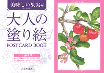 いちご、すぐり、マスカット、キウイ、レモン、すもも、桑の実、スターフルーツ、アセロラなど、四季折々のみずみずしい果実のカラー原画と塗り絵のポストカードを各16枚計32枚収録。
