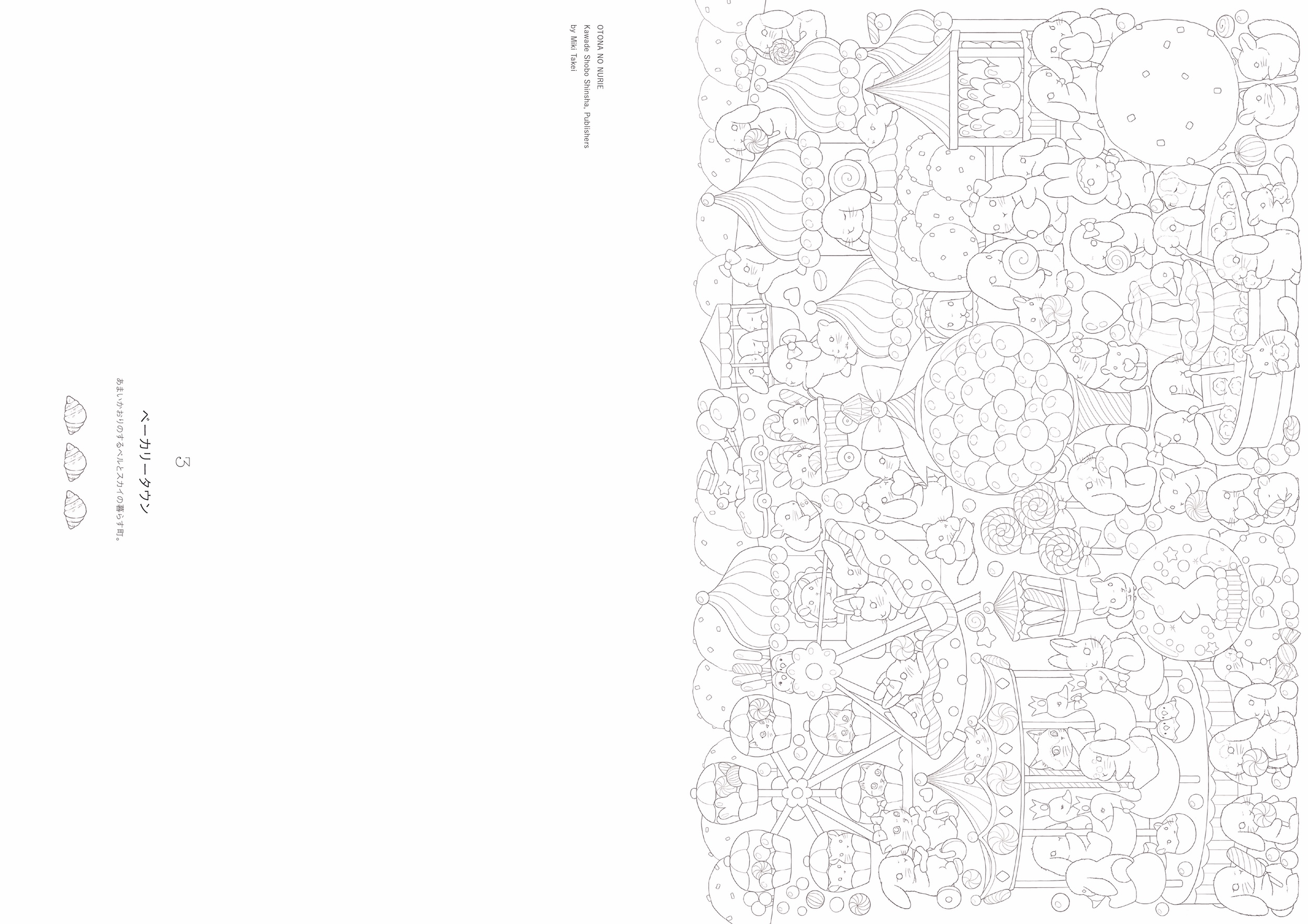 かわいい動物たちとあまいお菓子がいっぱいのイラストが塗り絵になりました。